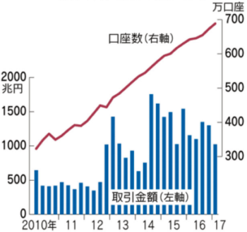 実際、国内FX業者の口座開設数は数年前から右肩上がりです。