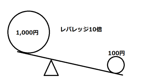 そしてFXでは100円しか持っていなくても、レバレッジというものを10倍かけることで1,000円分の取引が出来るということです。